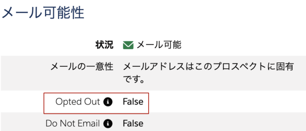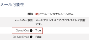 そして再度、Pardotのプロスペクトの状態で「オプトアウト」のチェックが外れていることを確認しました。