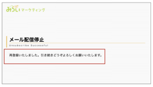 そうしましたら「再登録はこちら」のリンクをクリックしてください。みらいま用のUnsubscribeをリンクに指定しましたので、下図のように表示されました。