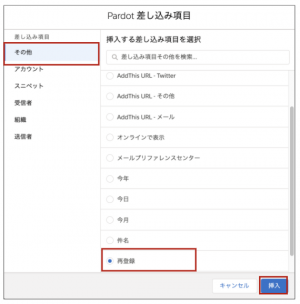 その他-再登録を選択し、「挿入」ボタンをクリックします。